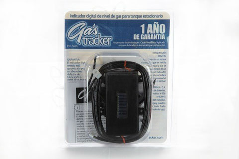 Equipo inalámbrico solar con indicador en litros y porcentaje.